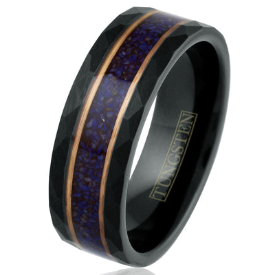 Black Tungsten + Hammered Finish + Rose Gold Edges